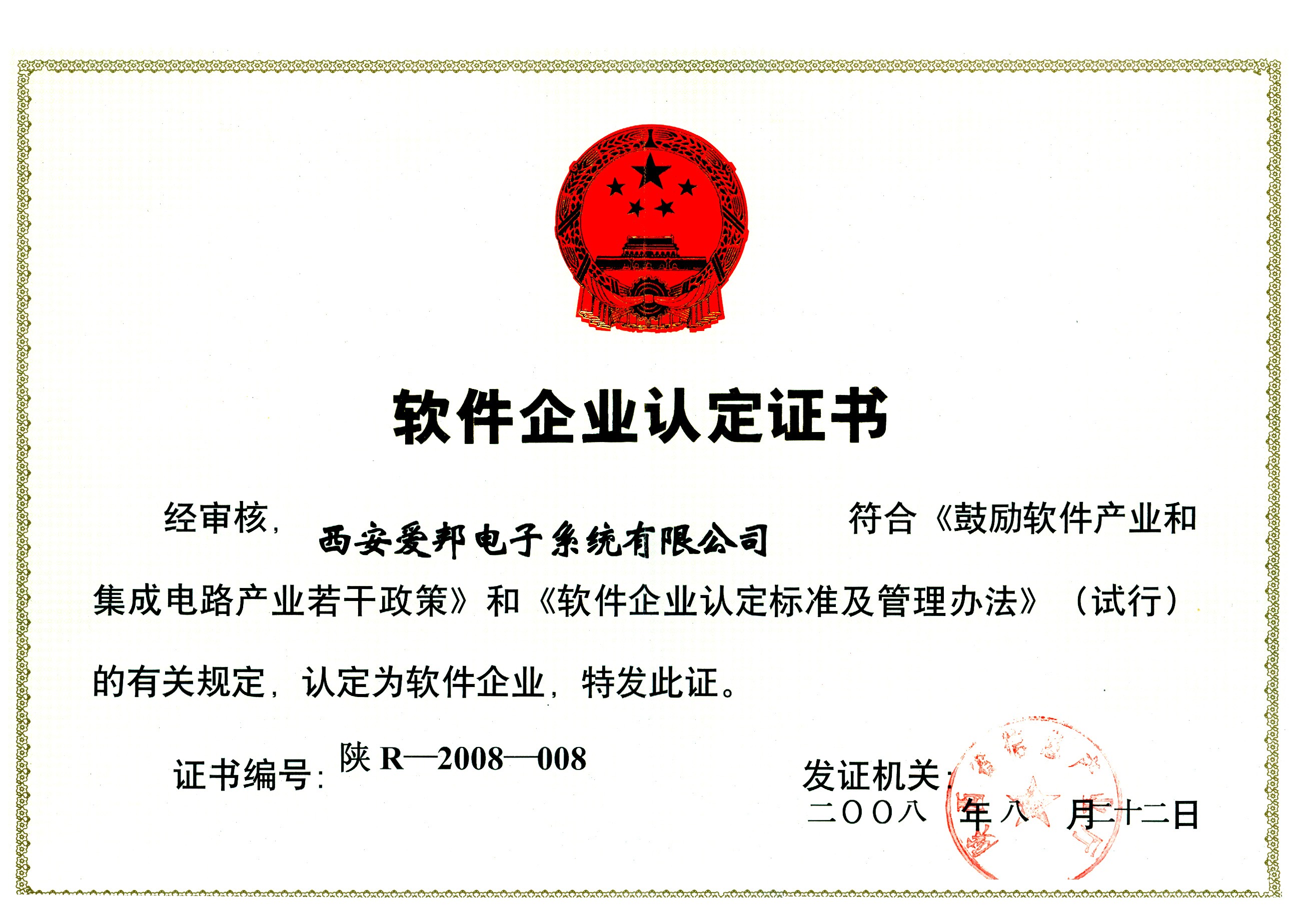 • 軟件企業認定證書